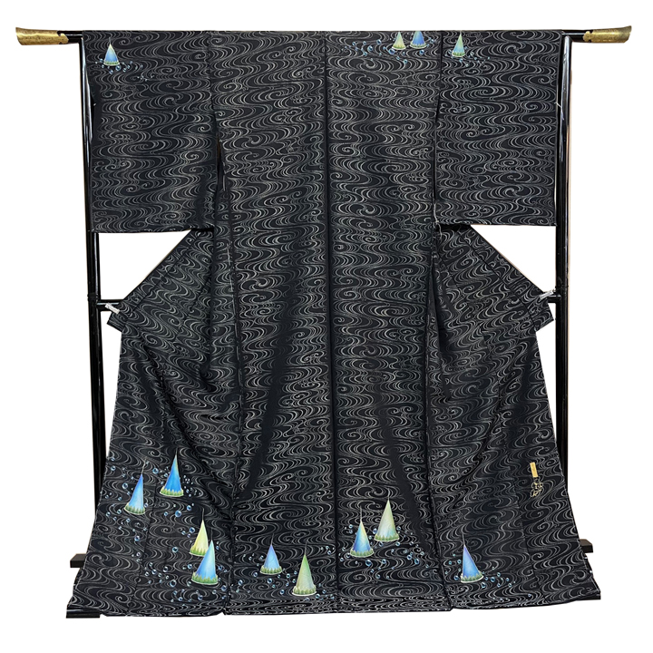 漆黒の中に銀糸の細かな流水模様が浮き立っております