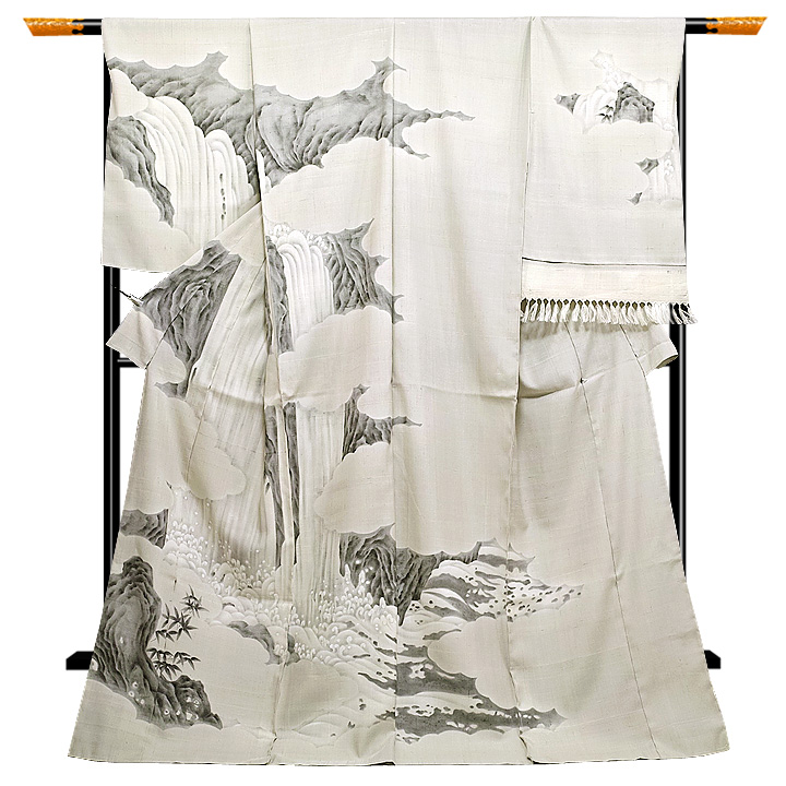 このお振袖は、先生にしか描けない『独特の世界観』が生地全体に描かれた、まさに古典美の最高峰ともいえる一枚でございます。